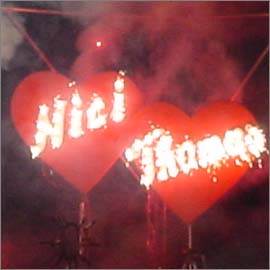 mit den Namen von Braut und Bräutigam in Feuerschrift an.